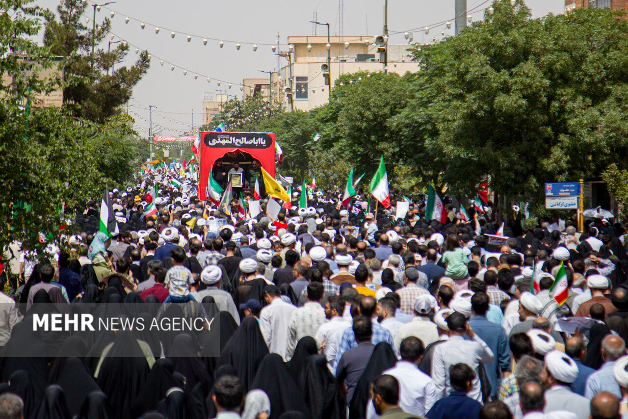 دلهای مردم، امروز بیش از گذشته آزرده خاطر شده است و خواسته انتقام سخت از مزدوران و مستکبران جهانی که در رأس آن دشمن صهیونی و حامی خبیثش آمریکای خبیث که دست او آغشته بر خون مظلومان است در وجود آنها موج میزد.