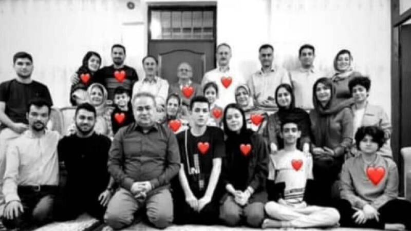 در تصویر کسانی که علامت قرمز دارند به شهادت رسیدهاند! ببینید بین آنها کدام یک درجهدار یا نظامی است؟ گفته بود با ملت ایران کاری ندارد!