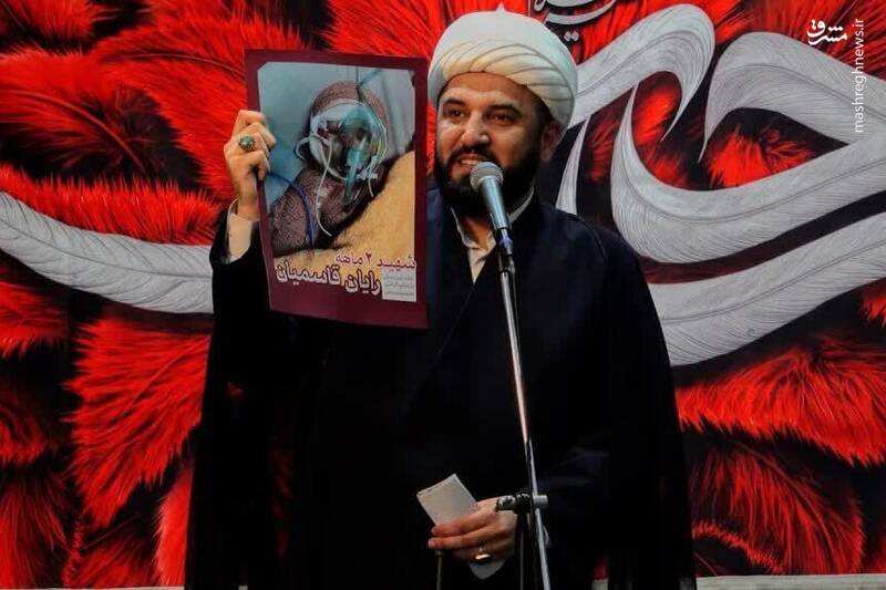 به گزارش مشرق، همزمان با روزهای ماه محرم، امام جمعه چهاردانگه باتوجه به شهادت نوزادانی به دست رژیم کودککش صهیونی، در اقدامی تصویری از یک نوزاد دو ماهه را بر دست گرفت، نوزادی که توسط رژیم کودککش صهیونی در تهران به شهادت رسید.